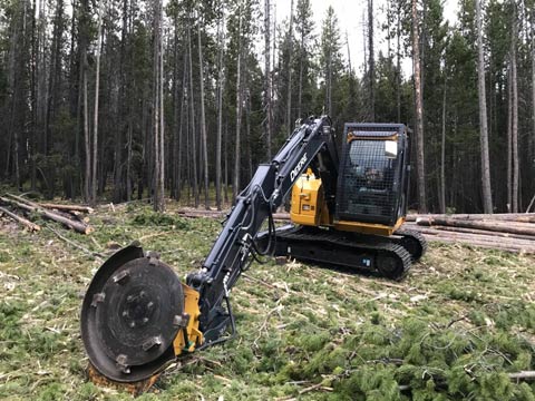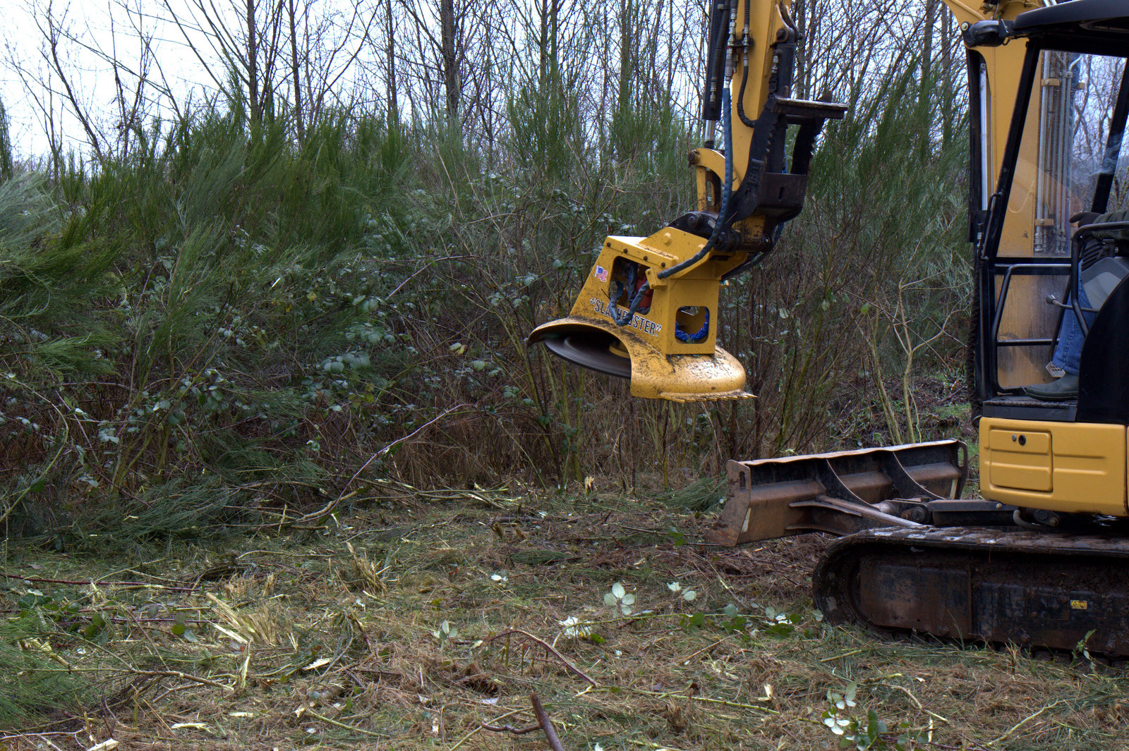 Mulching 4-6" DBH Douglas Fir trees and Alder trees (up to ~10" diameter at base) to ground level
